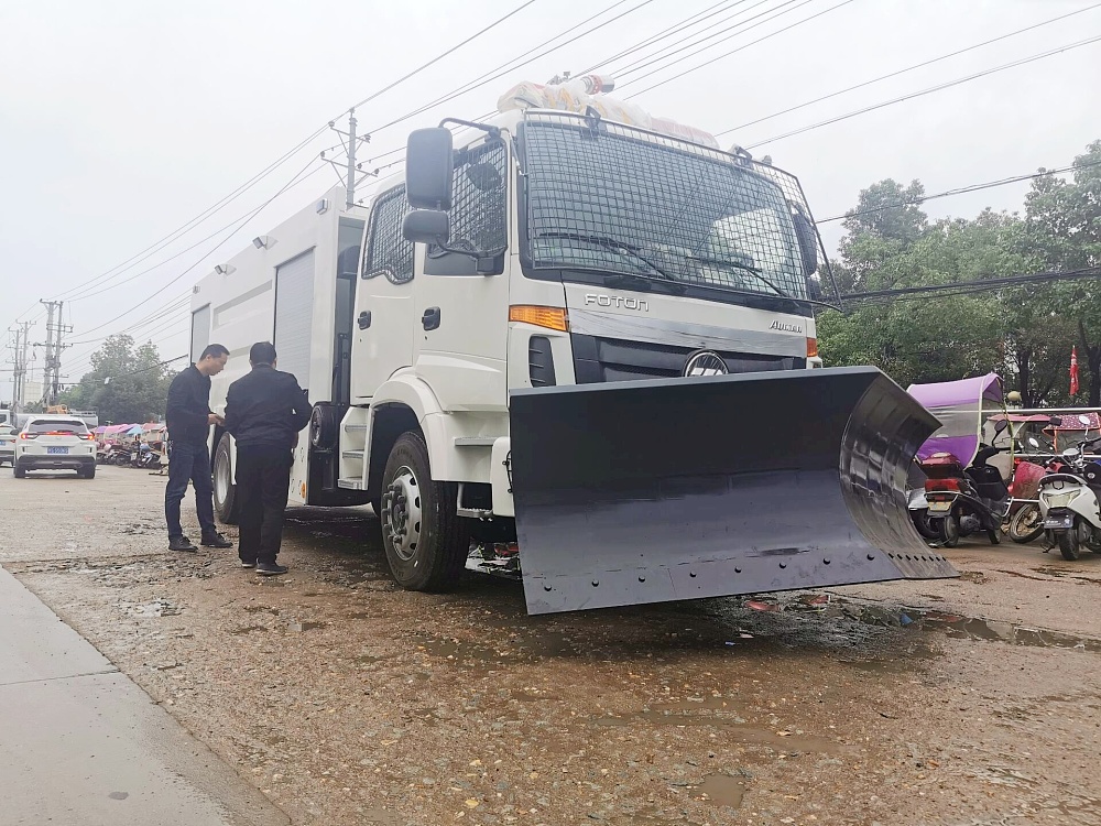 5、除雪铲结构合理,低速作业时可将雪推向一侧,高速作业时能将雪抛起;