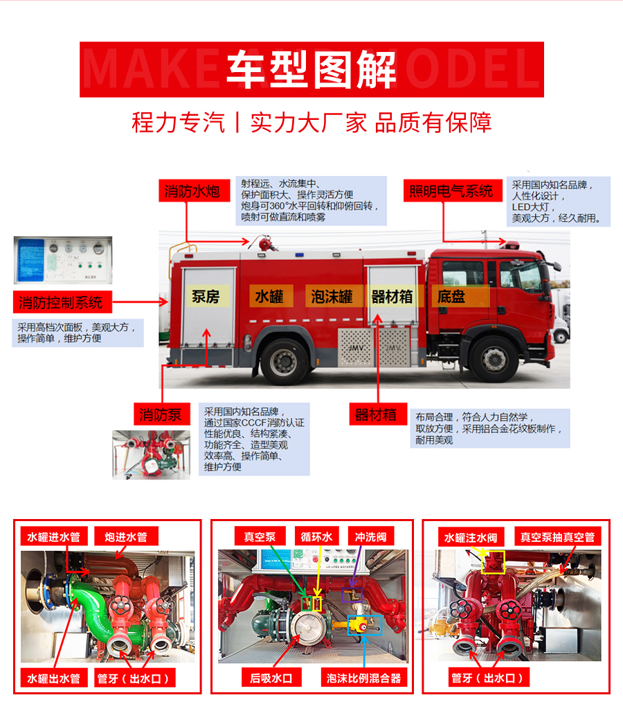 湖北程力专用特种汽车有限公司是专业生产销售消防车,水罐消防车,泡沫消防车,干粉消防车,水泡干粉联用消防车,消防洒水车,消防供水车,二氧化碳消防车,A类泡沫消防车,抢险救援消防车,森林消防车,越野消防车等等各种类消防车,各款消防车车型均有国五或国六汽车公告及免征公告且有CCC认证,可上**和民用牌照。